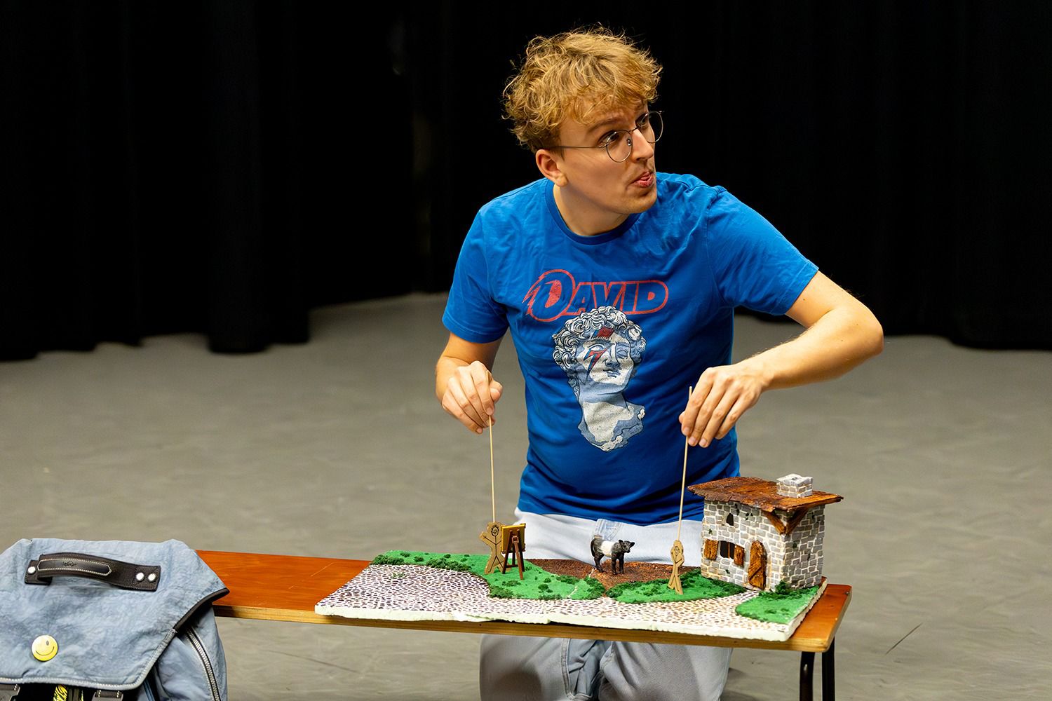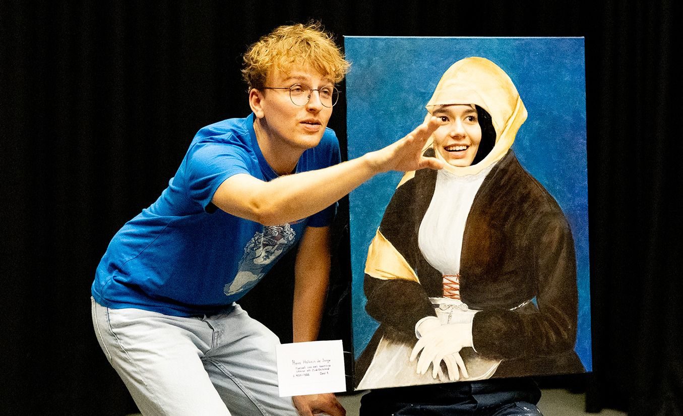 Tijdens onze voorstelling ben je als publiek getuigen van een ontmoeting tussen een hedendaags kids en een middeleeuws schilderij. Ze komen met elkaar in gesprek over het verschil tussen toen en nu en vallen van de ene in de andere verbazing.
